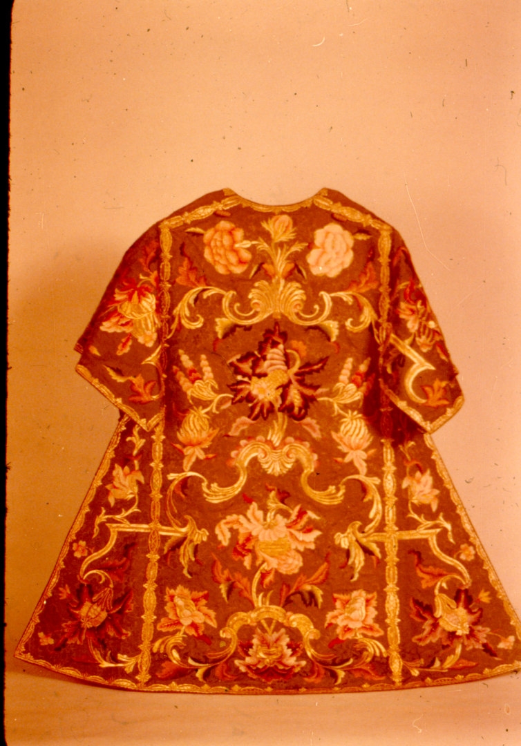 Riznica zagrebačke katedrale, zelena dalmatika s ljubičastim cvjetovima, 18. st.