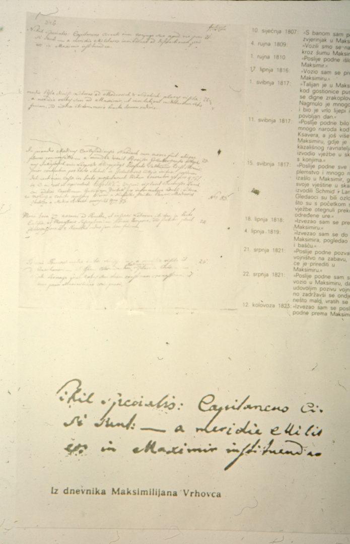 Zagreb, izložba Maksimir, dnevnik Maksimilijana Vrhovca