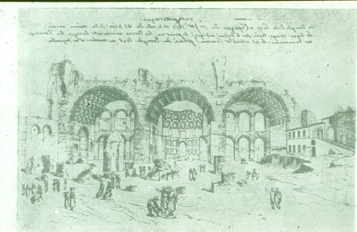 Italija, Rim, Forum Romanum, Maksencijeva bazilika, crtež