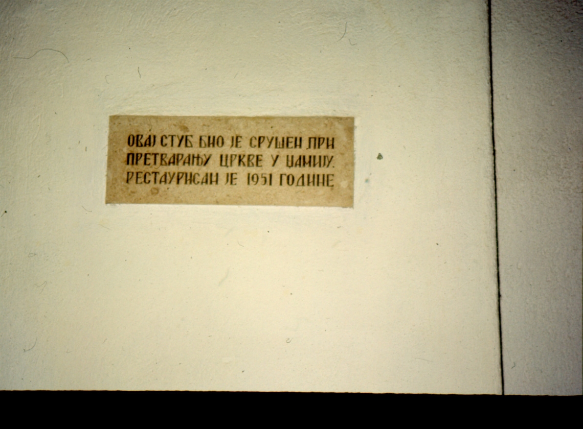 Prizren, Bogorodica Ljeviška, oznaka na rekonstruiranom stupu